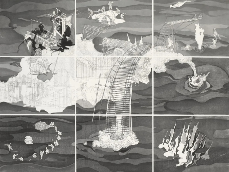 • 《筑桥》 版画 135cm×180cm 王启凡 北京