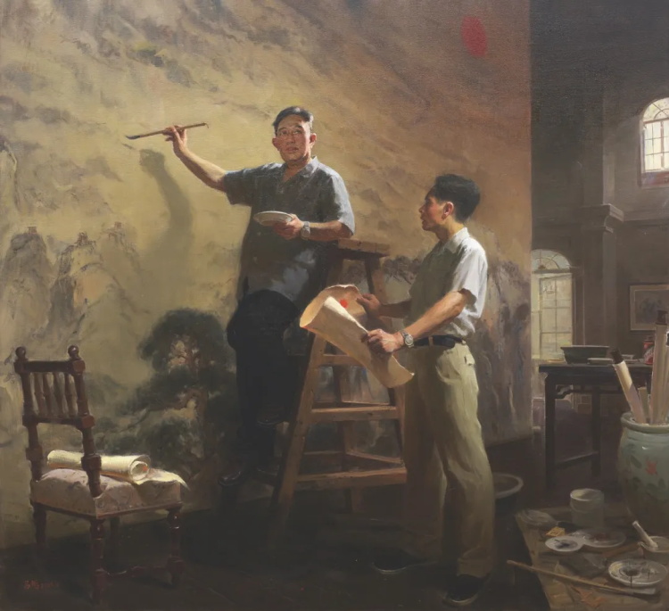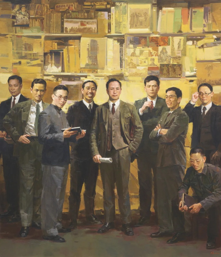 • 《岁月流金——夏衍和他的朋友们》 油画 200cm×236cm 殷雄 上海